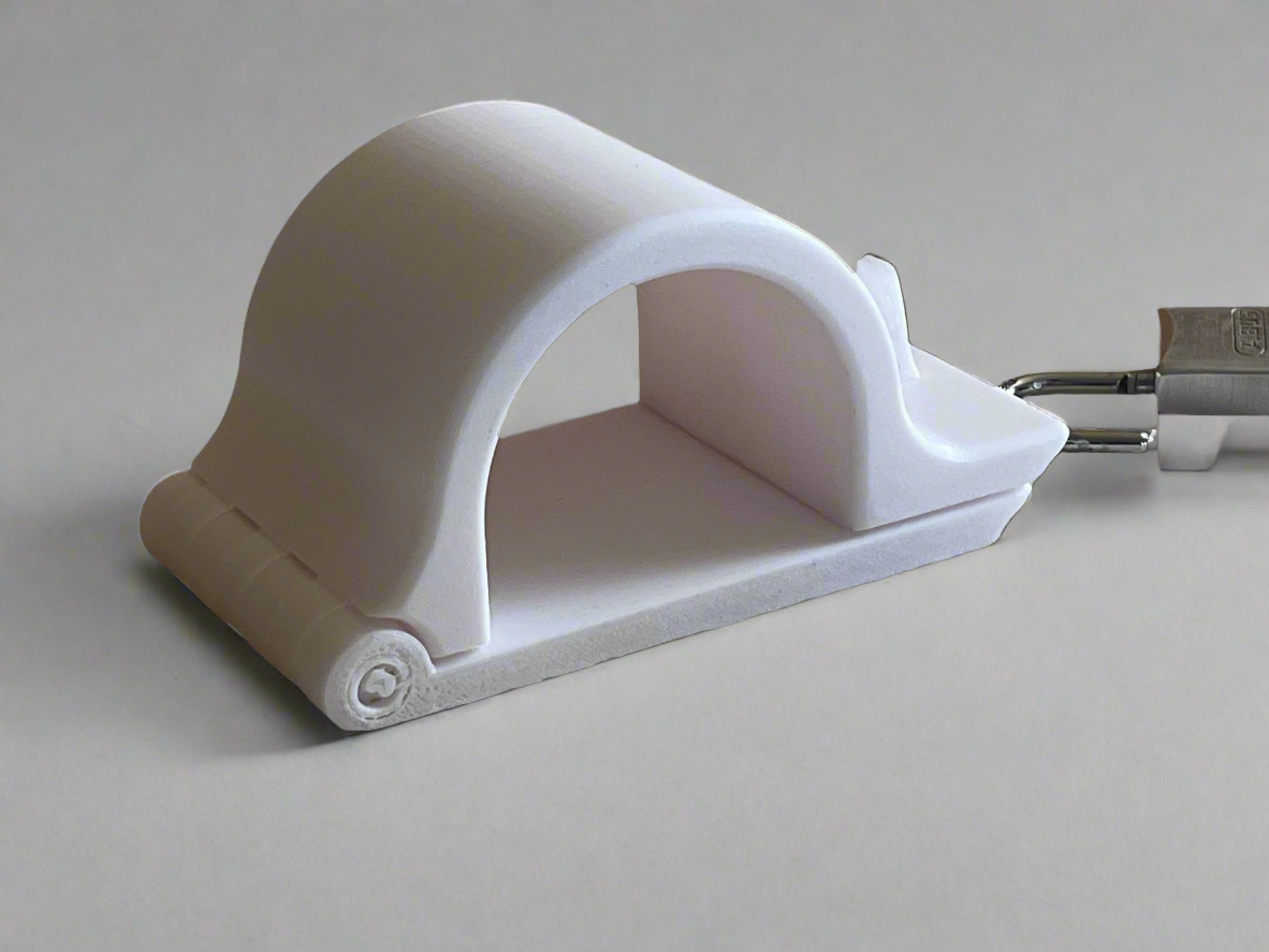 Für diejenigen, die noch mehr Sicherheit suchen, besteht die Möglichkeit, ein Vorhängeschloss durch den, im Klick-Mechanismus gedruckten O-Ring, anzubringen, was eine zusätzliche Schutzebene bietet, die nur mit dem Schlüssel geöffnet werden kann – somit ist der Zugang ohne diesen unmöglich, dieses Mal, selbst mit einer freien Hand.